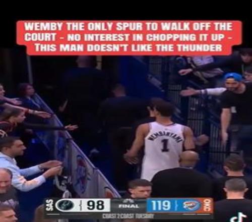 输完不开心不敌雷霆后文班亚马是唯一直接离场的马刺球员