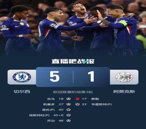 2025-10-23体育播报10月23日宣 欧冠联赛阶段第3轮,阿贾克斯1-5惨败给切尔西,在欧冠积分榜上继续排名垫底。本赛季阿贾克...