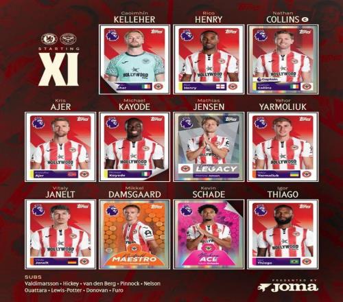 布伦特福德首发:1-凯莱赫、33-卡约德、22-内森-科林斯、3-里科-亨利、20-阿耶、18-亚尔莫柳克、24-达姆斯高、27-雅内尔特、8-延森、9-伊戈尔-蒂亚戈、7-沙德