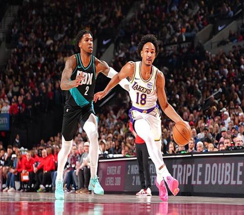 本场比赛中,湖人刚刚用十日短合同签下的后场新星科比-巴夫金(Kobe Bufkin)也是又一次得到了进入轮换阵容的机会,他的表现其实也是具备一定的亮点的。巴夫金全场出场22分16秒,投篮8中3,三分线外5中1,罚球2中2,得到了9分1篮板1助攻2盖帽的数据,还有2次犯规,正负值为0。相比之下,巴夫金也算是这支残阵湖人阵容中为数不多具备一些得分能力的球员了,他也能够吃下一定的球权,也具备一定的自主得分能力。事实上,巴夫金在防守端的表现也是具备一定的作用的,他在防守端也算是具备较高的活力和积极性的,并且起到了不错的效果。看起来巴夫金还是一名综合能力比较全面的球员,只是球队的整体表现实在是太差了,他的努力也没有办法收到回报。
